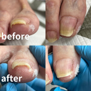 今回は、爪が厚く硬い、いわゆる「鷲爪」傾向のあるお客様の巻き爪補正の症例をご紹介します。